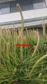 黒松や赤松、錦松の新芽は「ミドリ」といって産毛のような鱗片で覆われたつくしの様な状態で、松類の芽摘みはこのミドリを適当な長さを残して摘み取るためミドリ摘みともいいます。