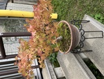 盆栽はコトネアスターと(おそらく)山もみじです。