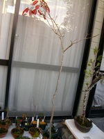 たいぶん背がたかくなりましたね。このような樹はなんだか姿がひょろっとしていてそのまま庭木にして眺めたくなる気もしますが、小さく作りたいということでしたら、根伏せや強剪定も出来る樹種ですから思い切って株元できってもいいかもしれません。