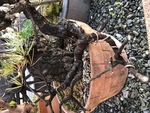 そして、どの苗も幹の模様が単調ですから、園芸苗から盆栽らしい姿を目指すのであればもう少し厳しい整枝が必要です。たたみ込んでミニ太にするか、やさしい斜幹か、はたまた懸崖か、文人にするかは素材や好みですが、枝元に芽はまったくない場合は文人にすることが多いです。針金かけは今でもできますが、適期は芽動き前(2月頃)ですから急がなくていいと思います。
