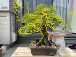 確かにもっと小さいうちに曲げたりしておけばもっと違う姿になったかもしれませんが、この状態からもできる樹形たくさんありますので、無理に小さくしようとしないで「これ以上大きくしない」という気持ちで取り組むといいかもしれません。
