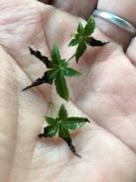 先週購入した獅子頭もみじの苗ですが、着いてから3日くらいですかね、3〜4枚の葉先が黒くなったのを見つけ、摘み取りました。