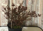 ミニサイズの盆栽なら優しい幹流れに1~2輪の花で見るのも良。小さくとも取木で太幹の模様木風に仕立てることもできます。
