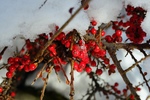 淡紅色の花は小さく目立ちませんが、実成りがよく、秋には赤い果実が鈴なりにつきます。