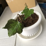 蔦の枝(おそらく冬蔦)を一輪挿しに挿して飾っていたら根っこが生えてきたので鉢に植え替えました。