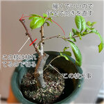 代わりに枝元から伸びている新しい枝は、将来の頭となる部分なので、伸ばしておいてください。向きがあらぬ方向になっているので、細い針金で向きを直しておくといいと思います。