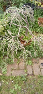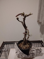 - ご指導頂きながらお返事遅くなり申し訳けありません。植え替えは終了しましたが根本が虫にやられ幹にも大分その影響が出ていましたので、ほうってもおけないのでワイヤーブラシで削って、松柏類なら舎利、藤の場合はサバですかね。この後ですが一ヶ月後に玉肥、半月毎にHB101で行きたいと思いますがどうでしょうか?グリーンキングもあります。それと一つ不思議なのは二年花も咲かなかったそうですが葉は青青していているわりには、蔓らしいものが全然見られません。やっぱり肥料、水不足だったんでしょうか。また活着後のご指導宜しくお願いします。今はキミさんと、ヒルマさん、籠池さんのミニ盆栽を繰り返し見ながら真柏で挑戦しています。今現在八鉢程出来ました。84歳の手習いです。ただ長野のではなかなか素材が手にはいりません。埼玉在住のキミさんが羨ましい。最後グチってしまいました。今後とも宜しくお願いします。