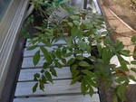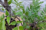 1.5mほどの樹高で数本育っており、葉だけは毎年旺盛に繁ります。