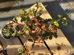 - さつきのミニ盆栽をしています。肥料焼けだと思うのですが葉が黄色くなってしまいました。