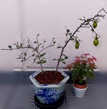 植物調整剤での着果は、あくまで交配が難しいケースに行うものと心得ておいたほうが盆栽の道に沿うように思います。薬で強制的に実を付けさせたものよりも、自然に交配したものの方が実付きはいいですし、見た目は同じでもどこか趣が違います。