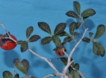 中国原産の小型の柿ですが、交配をくり返す中で多くの品種が国内で生み出され、果実の色や形も多様。盆樹では小葉で節が細かく濃紅色の実が成る「楊貴妃」が有名ですが、「木守」「玉環」「紅乙女」など100を裕に超える品種が作出されています。