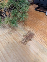 また、今更感は否めないのですが、盆栽自体は続けていきたい手前、数ヶ月でも可愛がっていた(つもり)五葉松を諦めきれず、ここから復活の手立てはないものかと、様子を見ながら葉水などあげているのですが、何か良い手立てはありますでしょうか。。。五葉松自体に負担はかかるのかもしれませんが、臭い匂いはしないものの、根腐れの可能性を考慮して土を替えてみようか思案しております。。。