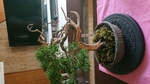 一週間ほど前に購入したジン、シャリ施工済真拍ミニ盆栽ですが購入時には気が付かなかったですですが幹に亀裂が入っています。