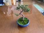 某盆栽園で植替え時にはかなりの量の枝が切られ、根も固まった土とともに量が相当減りました。針金かけもしました。5月中旬から肥料も置いています。