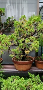 ビャクシンの仲間は日本各地の高山帯から丘陵地、海岸など広い分布域を有していて、栽培品種として知られる「貝塚イブキ」は庭木や生垣としても利用されていますが、盆栽で使われるのは高山性のミヤマビャクシン(深山柏槇)で、葉性に優れ幹模様も素晴らしい新潟県の「糸魚川シンパク」は世界的にも有名です。