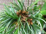 2枚目のゴヨウマツの茶色いのは(先端?葉の元のことですよね)ハカマで、この時期こうなりますからこれも問題ないです。